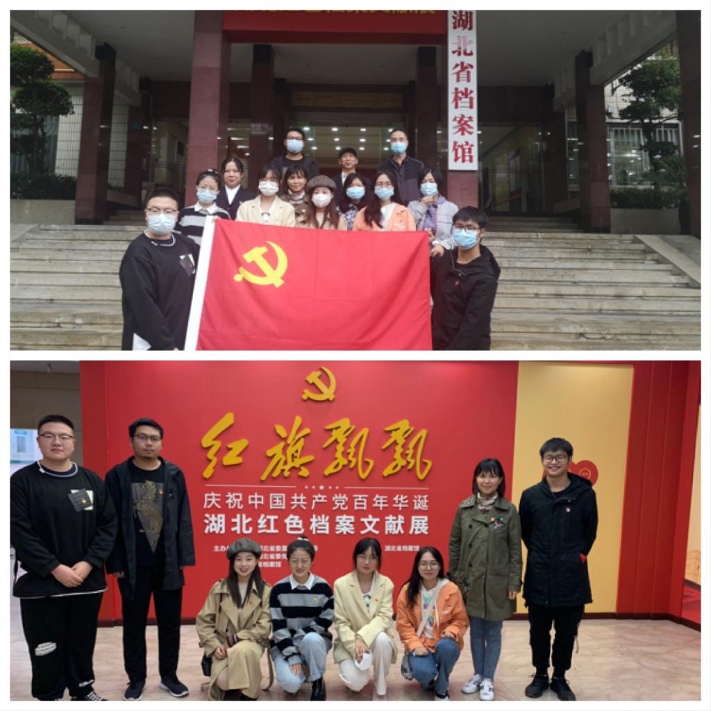 为庆祝中国共产党成立100周年,深入开展党史教育学习,深刻领会党的光荣革命历史,加强支部党员的党性修养,激发党员干部继承和发扬党的光荣传统,10月15日,yabo888vip网页版登录学生第三党支部党员在校档案馆馆长袁卫华同志结对带领下,与档案馆教师党员共同前往湖北省档案馆开展“红旗飘飘——庆祝中国共产党百年华诞湖北红色档案文献展”党史学习教育。