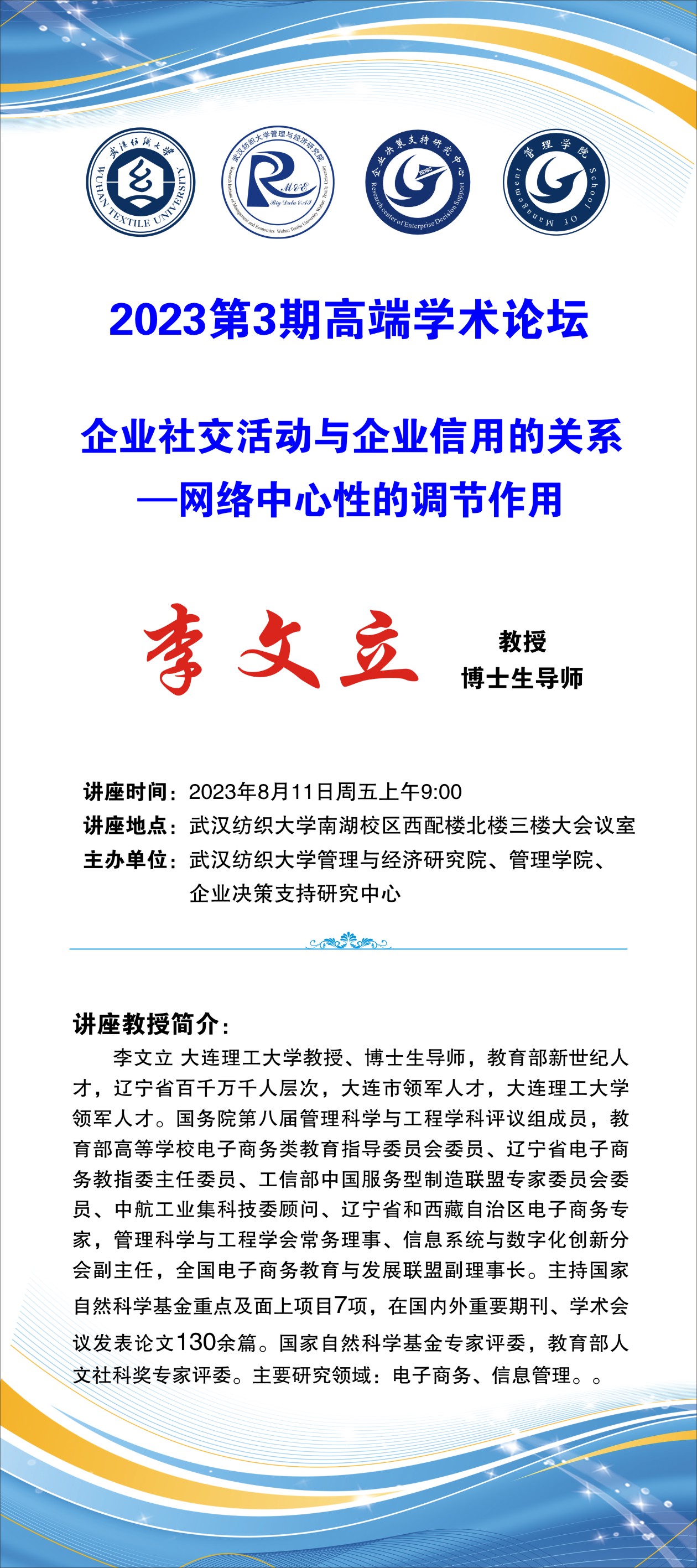 学术预告第437期yabo888vip网页版登录:企业社交活动与企业信用关系-网络中心性的调节作用