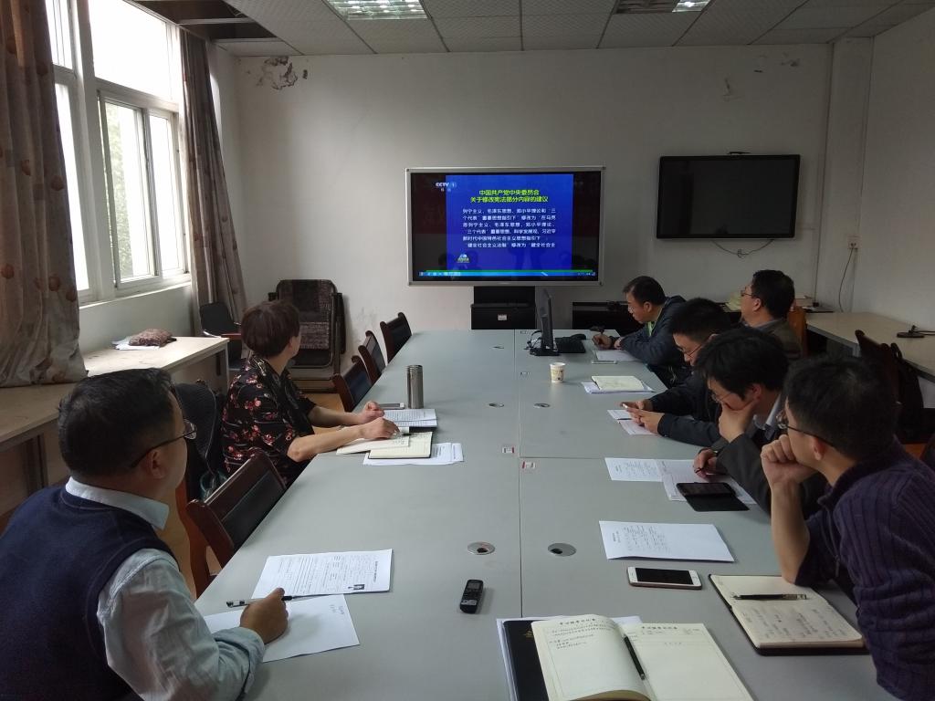 3月15日下午,yabo888vip网页版登录召开党委中心组学习会,集中学习了宪法主要修改内容,院党委全体委员、各教工党支部书记参加了学习会,会议由学院党委书记滕胜娟主持。