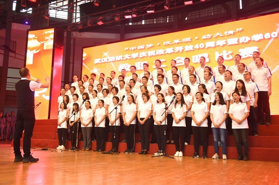 10月25日,“中国梦·改革颂·纺大情”我校庆祝改革开放40周年暨办学60周年教职工合唱比赛在阳光校区演播厅举行。来自学校24个单位和工会组成的23支表演参赛队、50余名离退休人员代表、1500余名在职教职工、100余名学生代表用歌声共同追忆了改革开放四十年的峥嵘历程和办学六十周年的激荡岁月。校领导与近1700名师生共同聆听欣赏了这场充满情怀、振奋人心的视听盛宴。