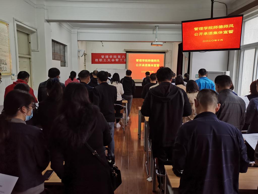 以师德师风建设为抓手,时刻牢记教书育人初心。组织开展师德师风建设系列活动,学院领导班子全体成员、党支部书记围绕“师德师风建设”专题集中学习;全院88名教职员工集体宣誓,在《师德师风公开承诺书》上庄严签字,纷纷表达了争做人民满意的“四有”好老师。