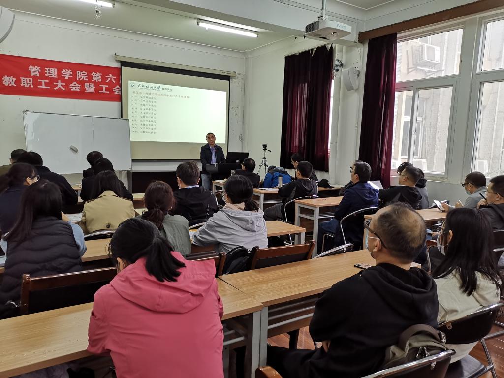 院长王济平结合学院实际情况,从总体要求、重点任务以及组织实施三个方面,对《深化新时代教育评价改革总体方案》进行了详细解读。他指出,要坚守为党育人、为国育才的使命,结合学习贯彻落实习近平总书记关于教育的重要论述,不断完善学院立德树人的体制机制,提高教育治理能力和水平;按照学校的总体部署,做好学院制度的“废改立”,确保立德人根本任务落地见效。