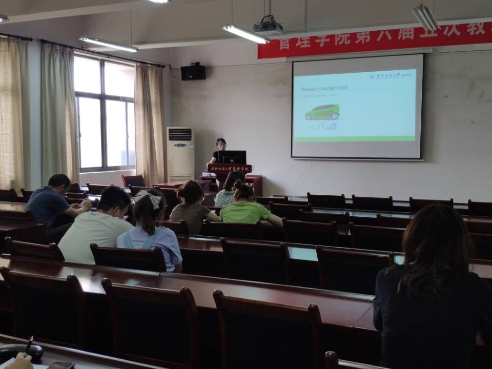2014年、2018年引进教师卢巍、何秀红两位博士,分别结合自己的研究方向,以《上市公司运营决策公告对其市值影响问题研究》《如何激发消费者的道德规范促进电动汽车的采纳?基于扩展的规范激活理论》为题,就近期科研成果进行了交流汇报,分享了各自在科研过程中遇到的难题和今后需要进一步探讨的问题。