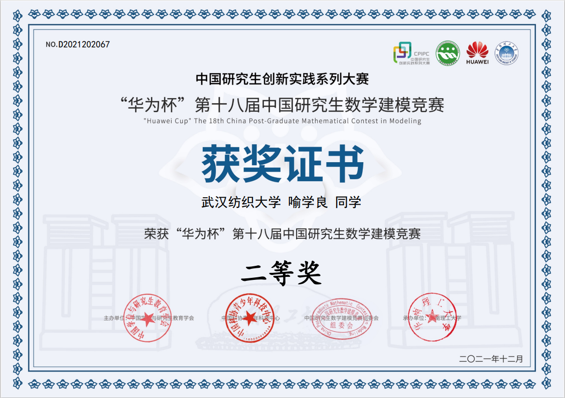 “华为杯”第十八届中国研究生数学建模竞赛由教育部学位与研究生教育发展中心主办、华南理工大学承办,由华为技术有限公司赞助。本届竞赛于2021年10月14-18日顺利举行,来自国际和全国各省、自治区、直辖市、特别行政区共459个研究生培养单位的17692队研究生交卷参赛。按竞赛章程,评选出一等奖206队(获奖比例为1.164%),二等奖2175队,(获奖比例为12.293%),三等奖3519队(获奖比例为19.890%)。总获奖队数5900队,总获奖比例33.348%