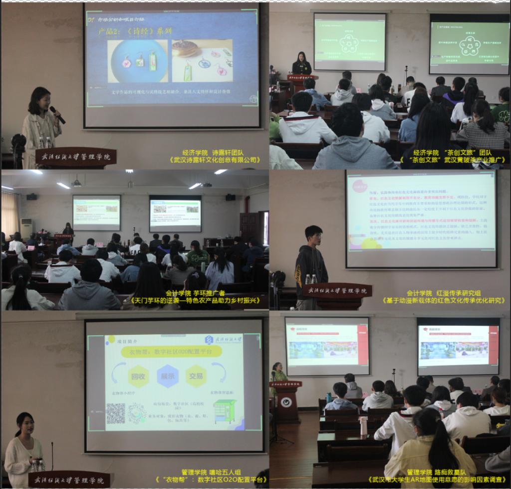 6个本科生团队围绕精心准备的创新创业项目进行了全方位展示。由教务处(创新创业学院)及各学院选派的专家等组成评审团队,就项目汇报进行了现场点评,并提出了中肯的指导意见和建议。不少与会学生表示,受益匪浅,收获满满。