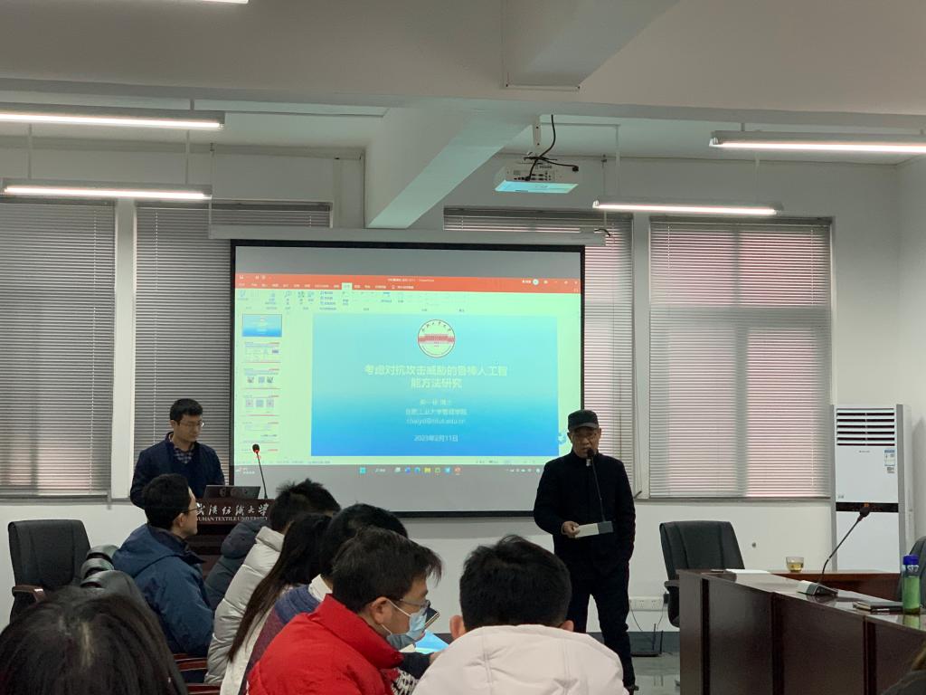 2月11日上午,合肥工业大学柴一栋教授为我院师生带来“考虑对抗攻击威胁的鲁棒人工智能方法研究”的讲座,本次讲座由夏火松教授主持,yabo888vip网页版登录吴金红院长、吴锦峰副院长及部分教师出席,部分研究生积极参会。