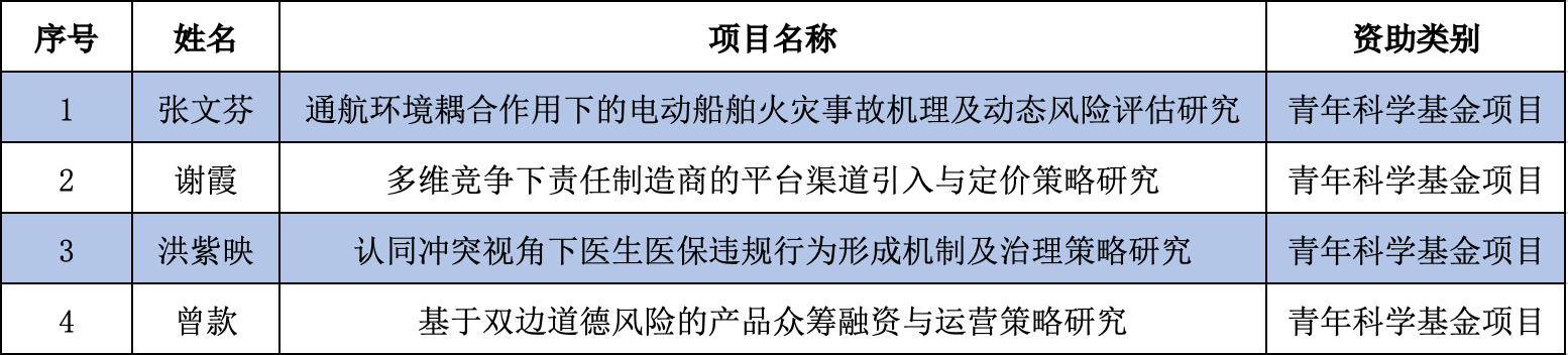 近日,国家自然科学基金委员会公布了2023年度国家自然科学基金项目评审结果,我院张文芬、谢霞、洪紫映、曾款等4位老师获批青年科学基金项目4项,直接经费120万,青年科学基金获资助项目数量创历年新高。