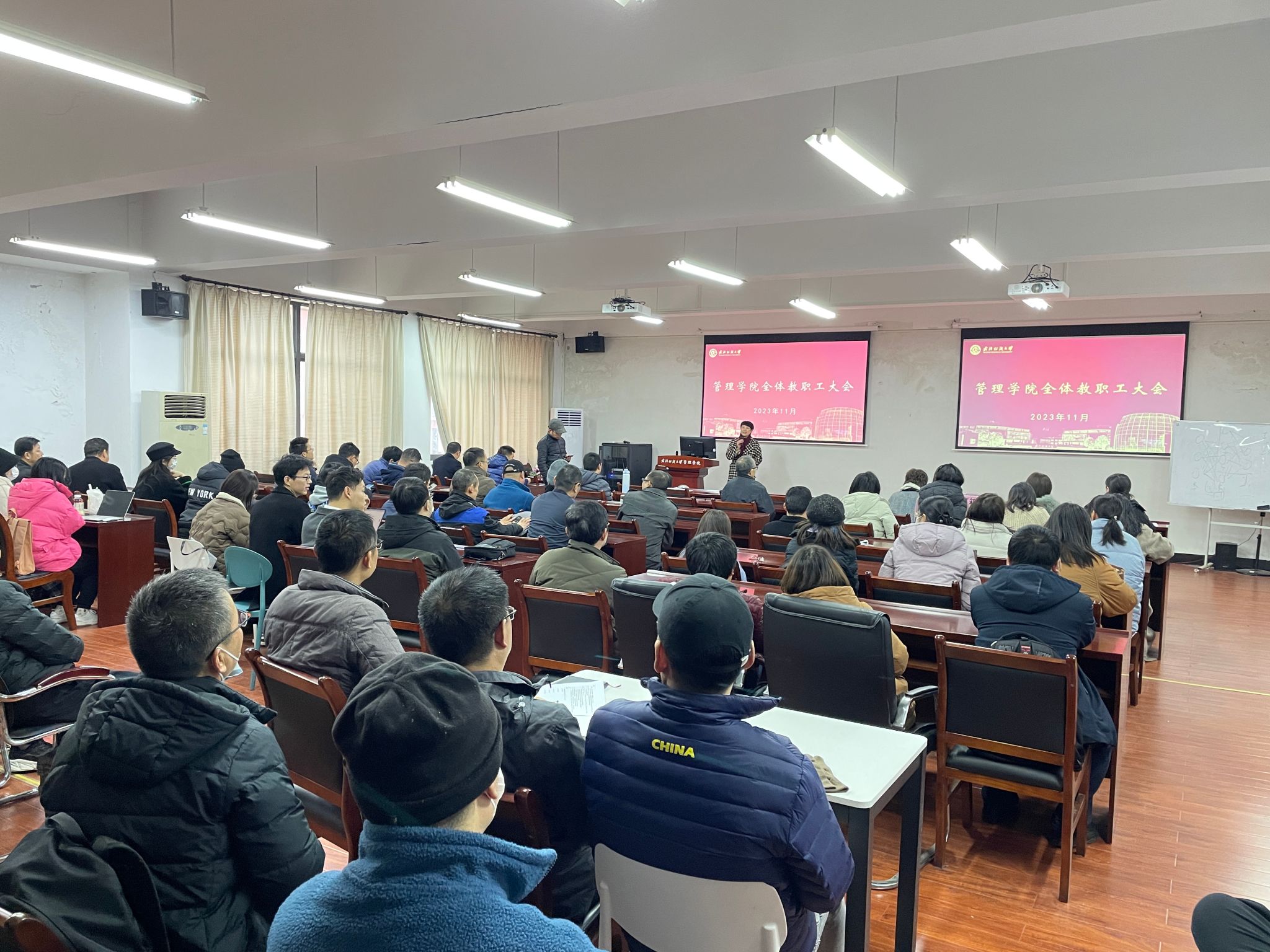 会上,吴金红院长结合了学校和学院年底考核工作的总体部署和有关安排,做yabo888vip网页版登录年底考核工作部署专题汇报。他分别从学校大事和学院大事两方面总结了学校和学院一年来的相关大事,并从科研、教学、人才、学工等四个方面做了深入而详细的汇报,使全院教职工进一步加深了对学校以及学院一年来工作的认识和了解。他强调,各分管领导一定要高度重视年底考核工作,认真准备,持续发挥自身优势,咬住目标进度,实行任务倒逼,向着年底目标再努力,再推进。各位老师一定要提高认识,增强工作积极性、主动性,要以时不我待的紧迫感全力奋战,确保学院年底各项考核工作顺利完成。