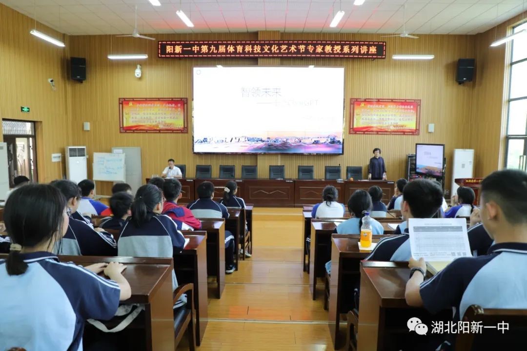 在世界读书日来临之前,4月20日下午,阳新一中第九届体育科技文化艺术节系列讲座开幕,我院万欣教授受邀,在该校明礼楼报告厅做了《智领未来——Chatgpt》为主题的专题讲座,该校高一、高二两百余师生参与,讲座由学校主任董振才主持。