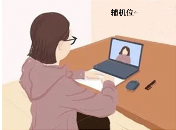 2.辅机位。辅机位设备放置在考生后方45°或指定角度拍摄,确保监控范围覆盖主机位屏幕或考生答题区域。